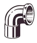Loddefitting av rødgods. Har en loddemuffe i den ene enden og en innvendig gjenge i den andre samt en vinkel på 90°.