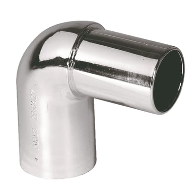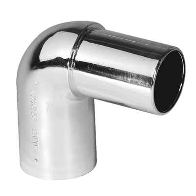 90° vinkel med spissende for innstikk, Ø32 mm, i forkrommet PP/TPE plast. Muffe/nippel.