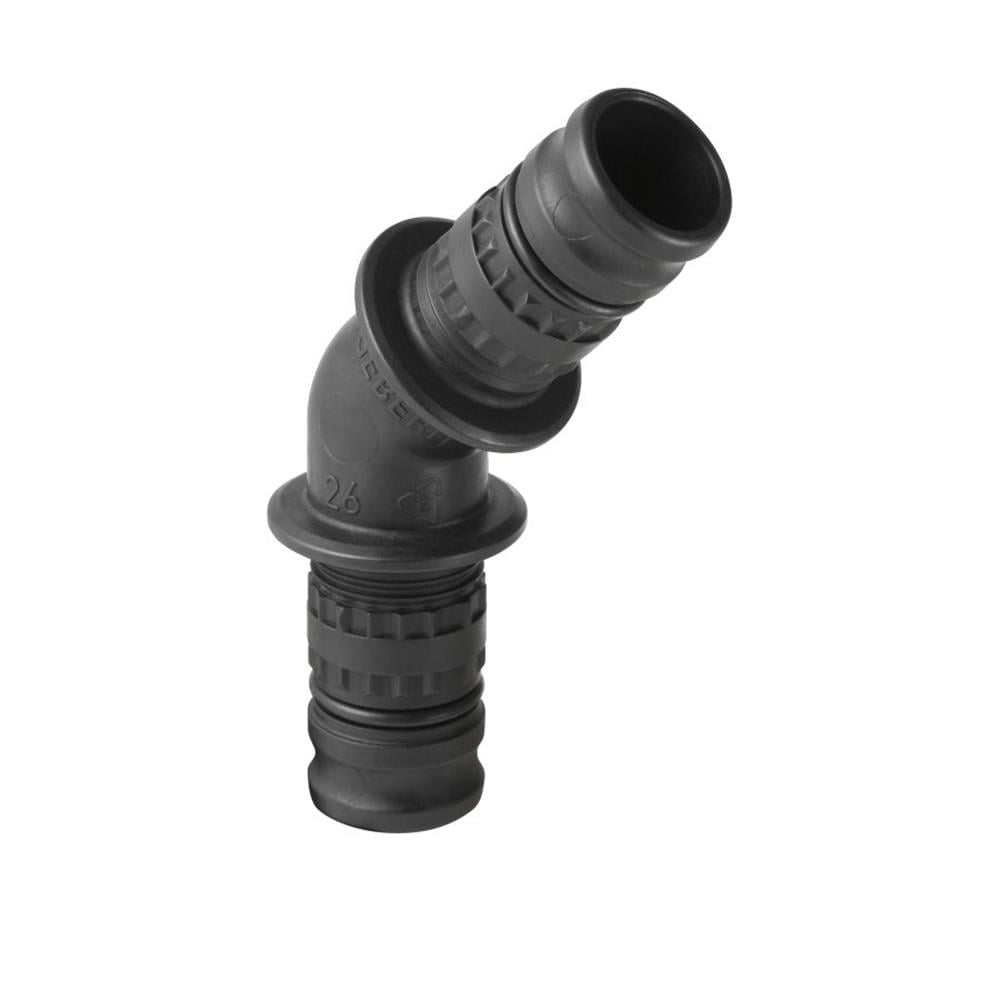 Mepla vinkel for pressmontering. Kan brukes til varme, kjøling, tappevann og trykkluft. Utett ved manglende pressing.
