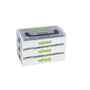 100 stk. 221-412; 100 stk. 221-413; 25 stk. 221-415; 4 stk. 221-500 (DIN-skinneholder). Mulighet for å bygge flere minibokser oppå hverandre.
