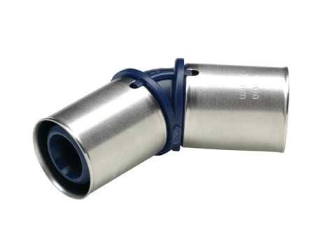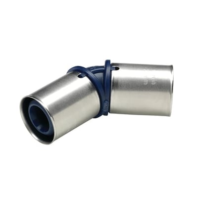 Presskobling som brukes til Tigris Alupex-rør fra Wavin. Har presskoblinger i begge ender. I tillegg er endene vinklet 45° i forhold til hverandre.