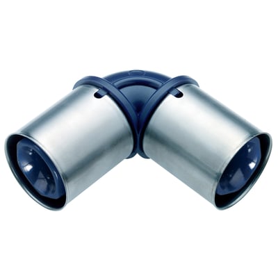 Presskobling som brukes til Tigris Alupex-rør fra Wavin. Har presskoblinger i begge ender. I tillegg er endene vinklet 90° i forhold til hverandre.