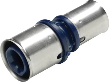 Presskobling som brukes til Tigris Alupex-rør fra Wavin. Har en forhåndskobling i begge ender og en av dem er redusert i forhold til den andre.