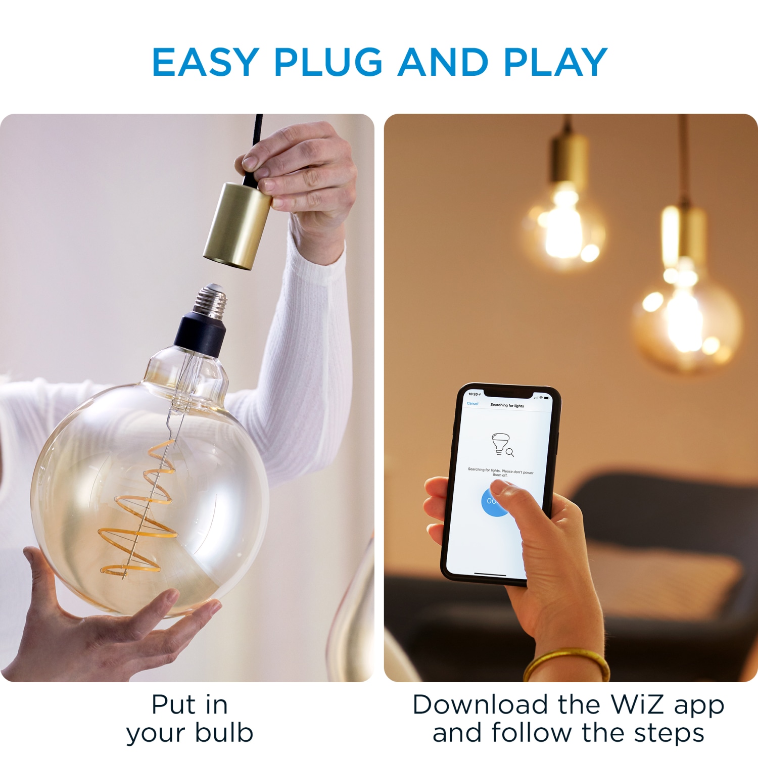 WiZ Filament Amber Tunable White Wi-Fi PS160 E27-pæren er den perfekte elegante og kostnadseffektive smartpæren til hjemmet.