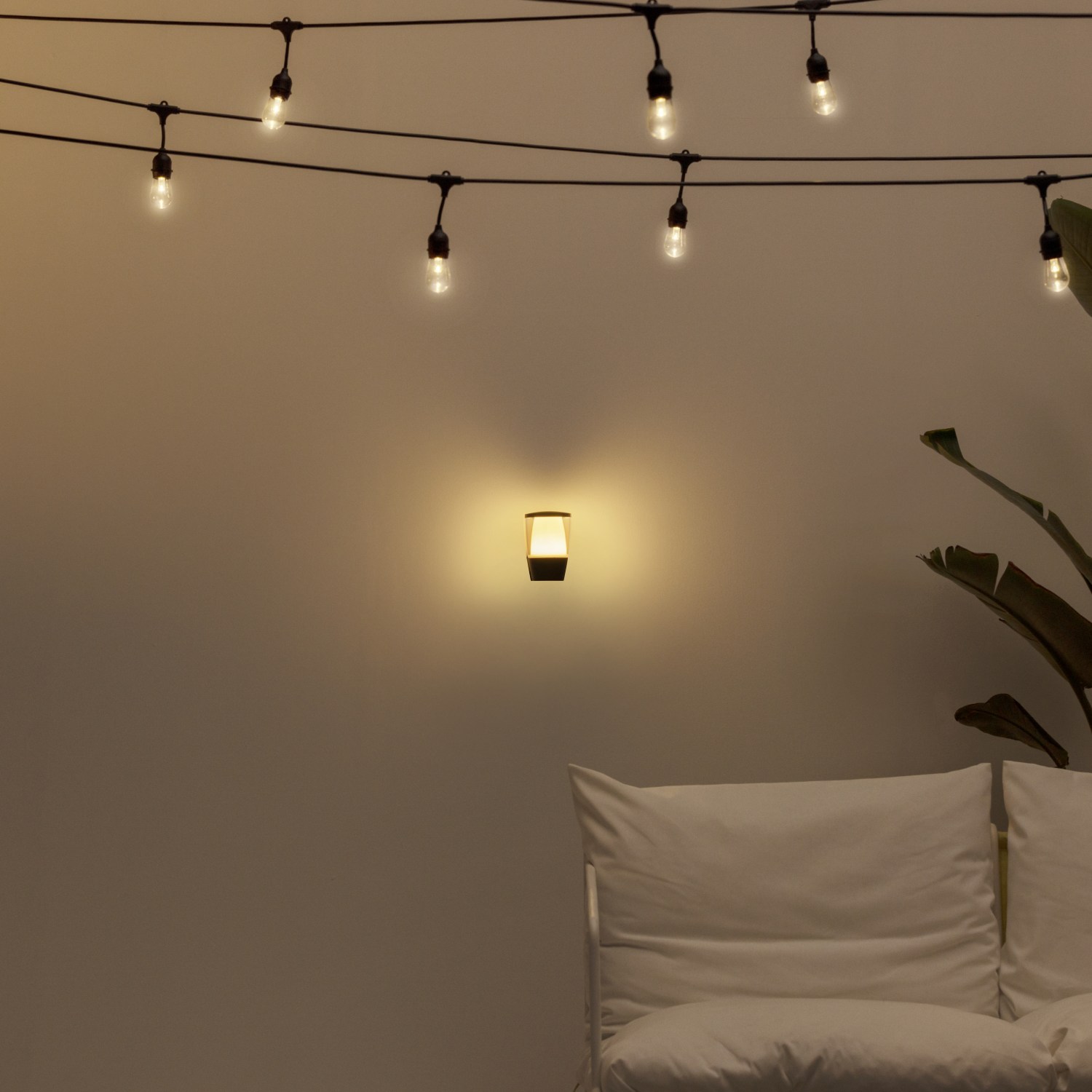 Møt WiZ Elpas utendørslampen, en elegant vegglampe som tilbyr et spennende, moderne alternativ til de klassiske lampedesignene for utendørs bruk. Denne lampen gir deg mulighet til å nyte millioner av farger og hvitt lys i enhver nyanse du ønsker. Du kan også velge mellom forhåndsinnstilte dynamiske scener og lage automatiseringer som får belysningen din til å passe perfekt inn i rutinene dine. Installer den ved siden av hoveddøren, langs husets vegger eller på balkongen eller terrassen for å løfte både små hverdagsøyeblikk og spesielle begivenheter med fantastisk belysning. Bruk ditt eksisterende Wi-Fi til å styre lyset med stemmen din eller WiZ-appen.