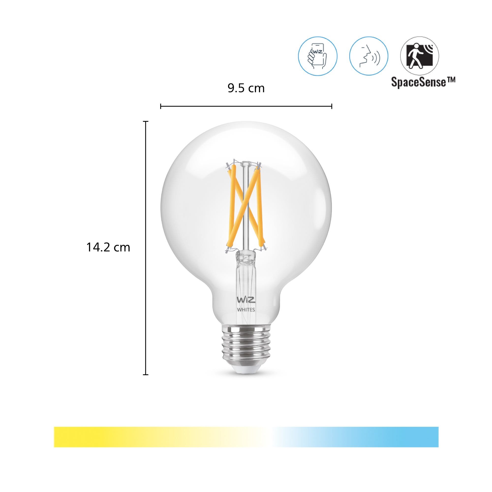 WIZ filament LED-pære G95 E27, klar – moderne belysning til ditt hjem