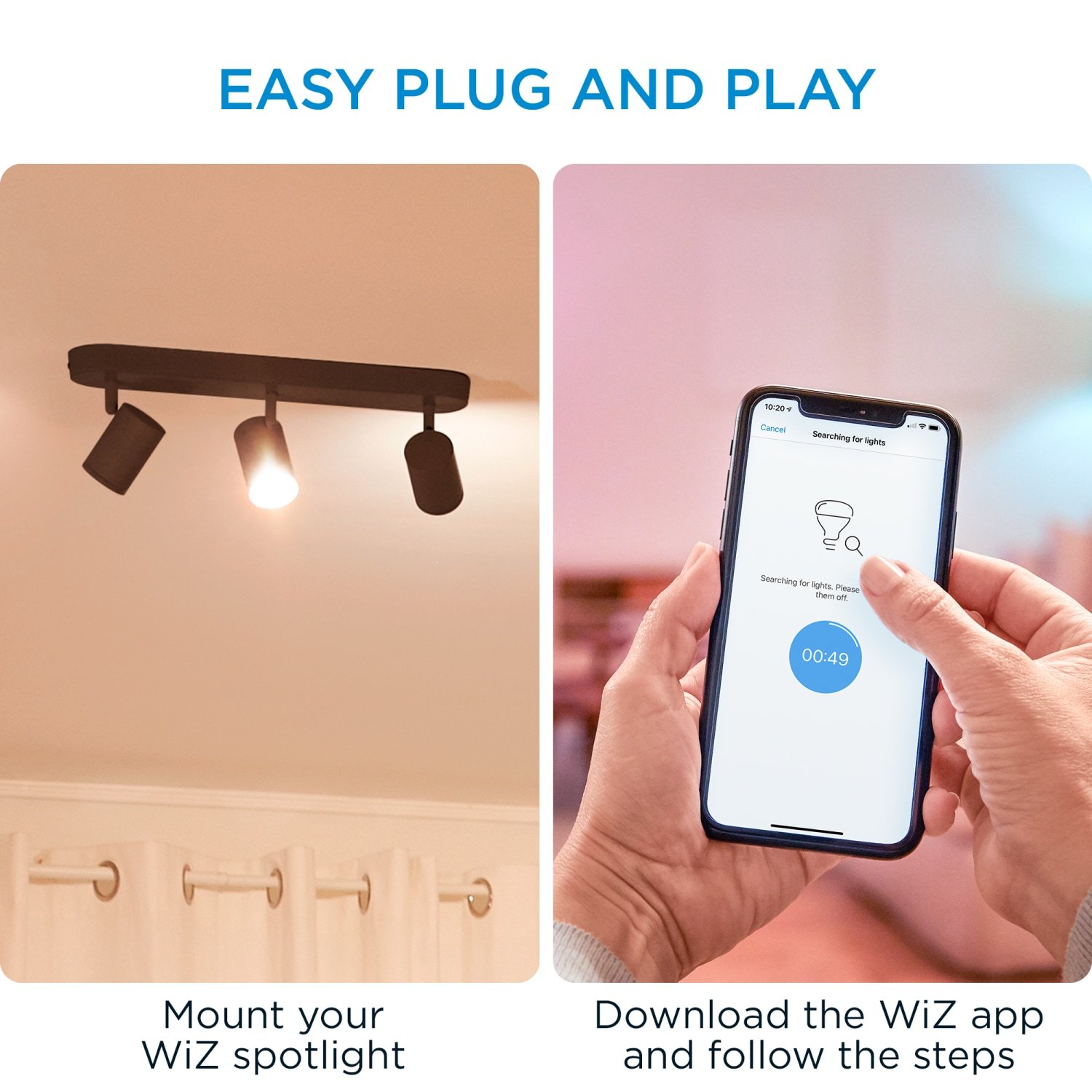 Smarte forhåndsinnstilte funksjoner og den enkle plug and play installasjonen gjør det lett og bekvemt å skape hyggelig stemningsbelysning i ditt hjem. Med den gratis, brukervennlige WiZ appen får du enkel kontroll over din intelligente belysning, og du kan også styre lyset ditt med stemmekontroll via smarttelefonen din eller en stemmeassistent. La WiZ hjelpe deg med å automatisere dine behov for belysning og ta seg av alle dine daglige rutiner for deg.