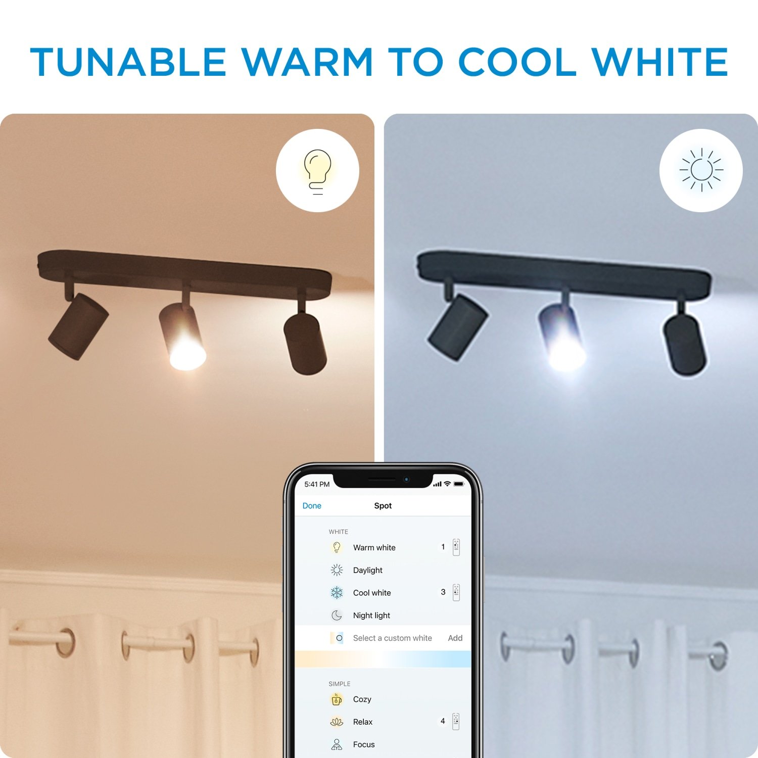 WiZ Imageo tunable white spotlamper lar deg nyte den perfekte belysningen i hvilken som helst tone av varmt til kjølig hvitt lys. Med tre justerbare spothoder får du her en stilren og moderne lampe i hvit, som lett lyser opp og fremhever dine kunstverk, verdigjenstander eller deler av ditt hjems interiør.