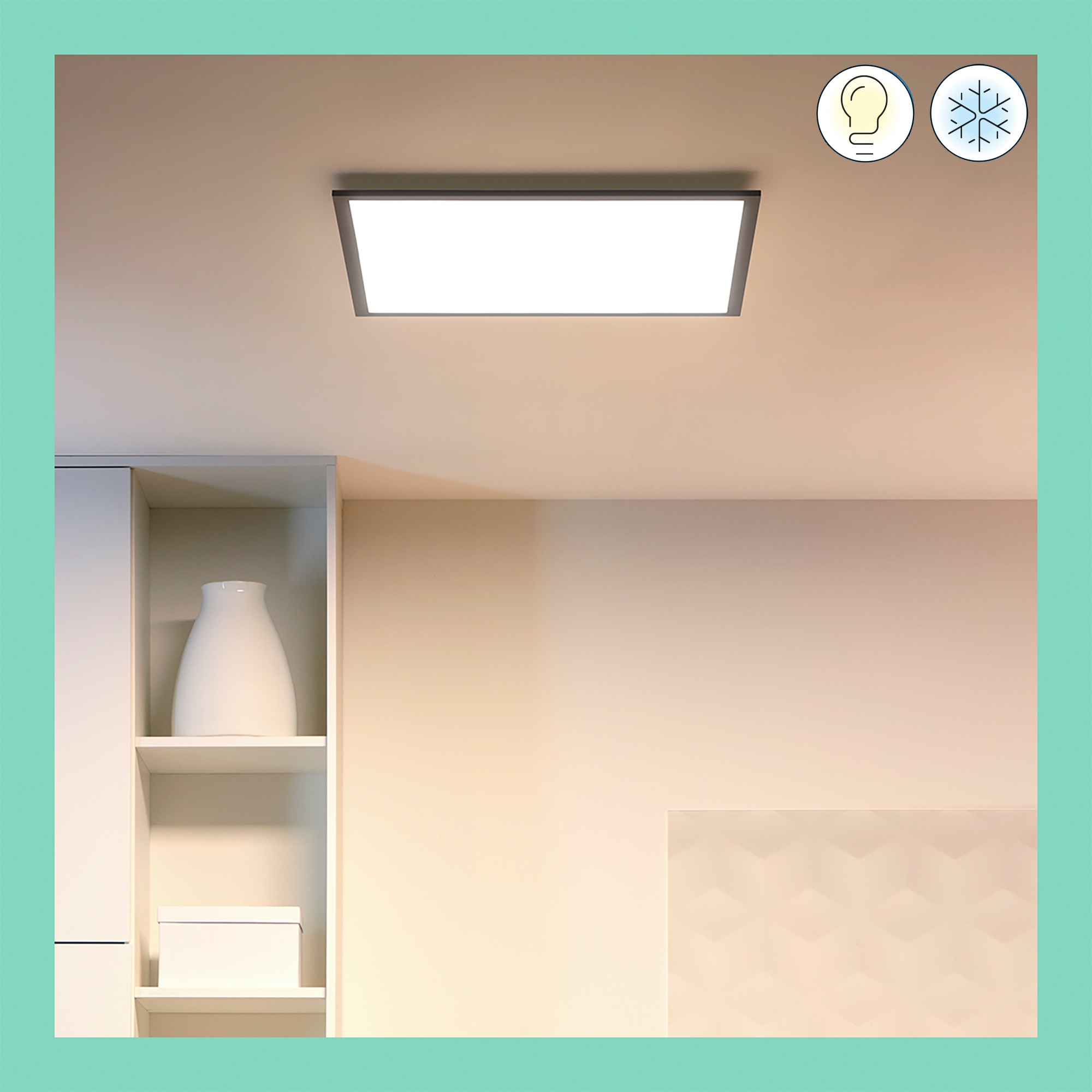 Med WiZ takpaneler med justerbart hvitt lys kan du ta masse dagslys inn i ethvert rom – selv om det ikke har et vindu. Dette smarte, kvadratiske panelet med en svart ramme kan være overlysvinduet rommet ditt mangler. Det slanke designet passer inn i enhver innredning og gir deg alle belysningsmulighetene du kan ønske deg.