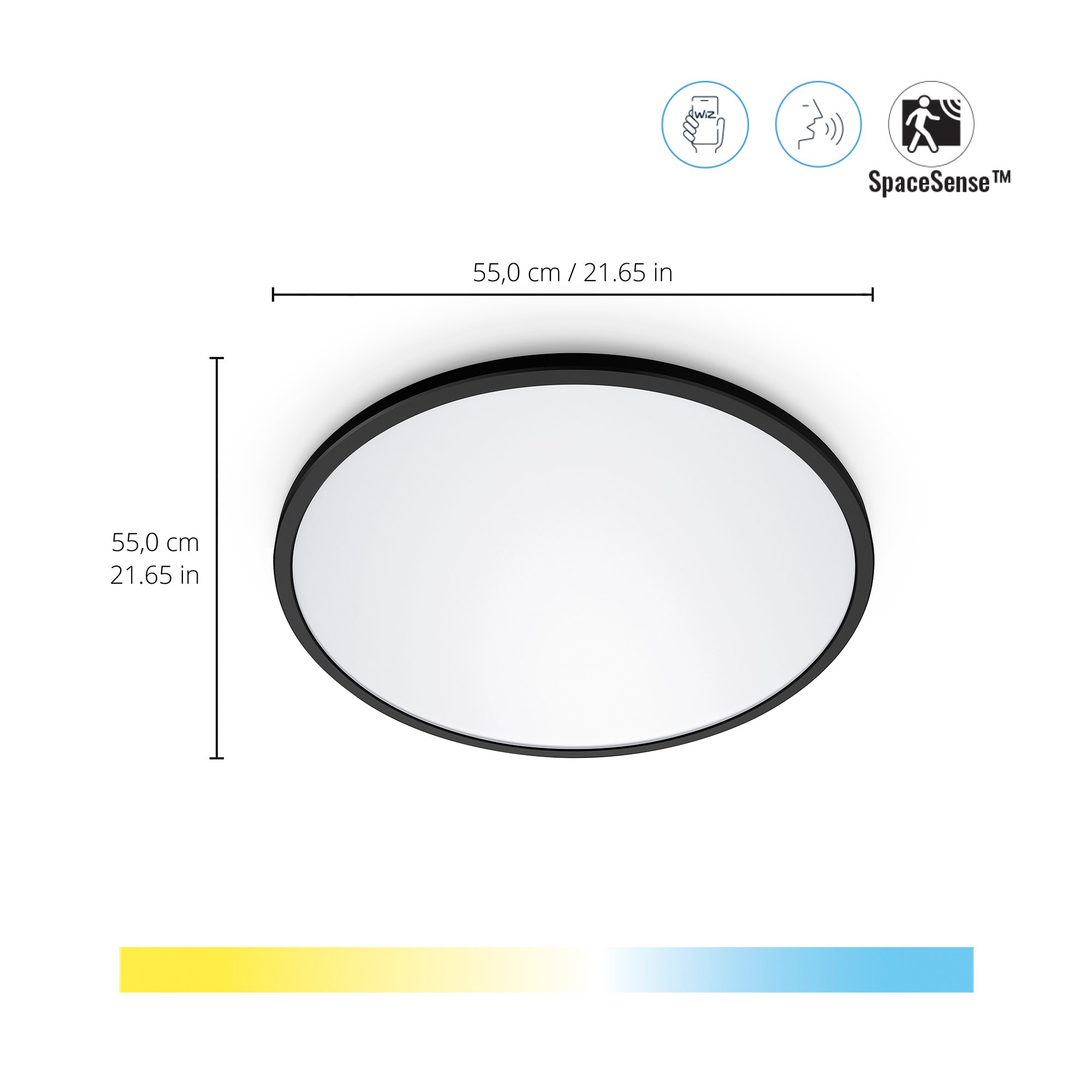 Med Superslim LED taklampe er det enkelt å tilpasse lyset til hverdagen din. Den store runde lysflaten kan lyse med både kjølig og mykt hvitt lys. Styres via app.